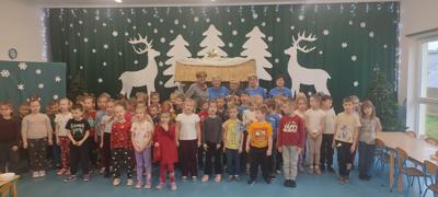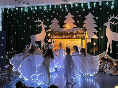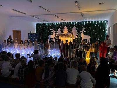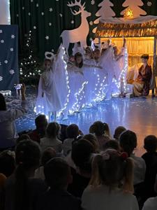 Dnia 16 i 17.12. odbyły się Jasełka przygotowane przez grupę Żabki. Dzieci swoje umiejętności zaprezentowały swoim kolegom i koleżankom z grup przedszkolnych, a także dla pracowników przedszkola. Kolejnego dnia 17.12 rozpoczęto Jasełka dla rodziców. Złożone przez Panią Dyrektor życzenia i to niezwykłe wydarzenie wprowadziły wszystkich zgromadzonych w radosny, wzruszający świąteczny nastrój i stało się okazją do wspólnego przeżywania magii Bożego Narodzenia. Mali artyści z wielkim zaangażowaniem wcielili się w swoje role, prezentując piękne wiersze, pastorałki oraz sceny nawiązujące do narodzin Jezusa. Dzieci zachwyciły publiczność nie tylko doskonałym przygotowaniem, ale także naturalnością, odwagą i szczerością, z jaką występowały na scenie. Wyjątkowym zaszczytem dla naszej społeczności była obecność Burmistrza Miasta Kamienia Pomorskiego, pana Stanisława Kuryłło, który z uwagą obejrzał przedstawienie i skierował do dzieci oraz nauczycieli ciepłe słowa uznania. Podziękował najmłodszym za piękny występ, a wychowawcom za trud włożony w przygotowanie uroczystości. Jasełka były nie tylko artystycznym wydarzeniem, ale także ważną lekcją tradycji, współpracy i wzajemnej życzliwości. Wspólne kolędowanie oraz świąteczna atmosfera na długo pozostaną w naszej pamięci. Serdecznie dziękujemy dzieciom z grupy „Żabek” oraz wszystkim gościom za obecność i wspólne przeżywanie tego wyjątkowego czasu.