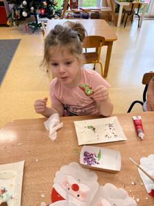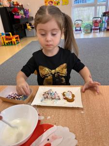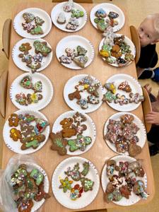 W przedświątecznej atmosferze w naszym przedszkolu odbyło się wyjątkowe wydarzenie – warsztaty dekorowania pierników z udziałem wolontariuszy Uniwersytetu Trzeciego Wieku. Tego dnia przedszkolna sala zamieniła się w prawdziwą piernikową fabrykę, pełną zapachu korzennych przypraw, kolorowych lukrów i radosnego śmiechu dzieci. W zajęciach wzięły udział przedszkolaki z grup Żabek, Duszków, Krasnali, Misiów i Biedronek. Dzieci z ogromnym entuzjazmem przystąpiły do pracy, dekorując pierniki według własnych pomysłów. Na stołach pojawiły się gwiazdki, serduszka, choinki i aniołki, a każdy piernik był małym dziełem sztuki. Wolontariusze UTW z wielką cierpliwością i serdecznością pomagali dzieciom, dzieląc się swoim doświadczeniem i ciepłem. Wspólna praca była nie tylko okazją do rozwijania zdolności manualnych i kreatywności najmłodszych, ale także pięknym przykładem międzypokoleniowej współpracy.