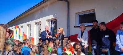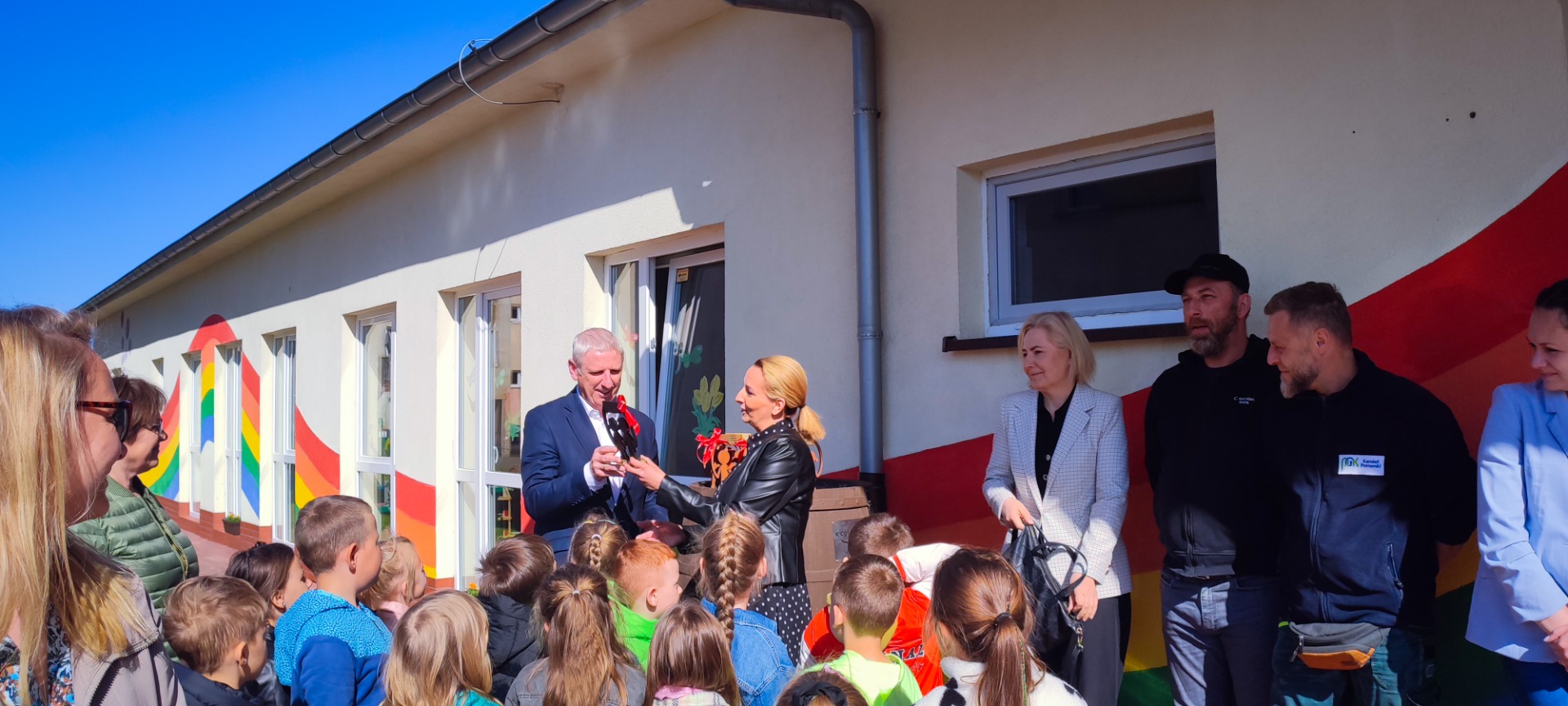 Dziś w naszym przedszkolu odbyło się uroczyste otwarcie długo wyczekiwanego, zmodernizowanego placu zabaw. Dzieci już od rana nie mogły się doczekać, by pobiegać po nowej, bezpiecznej nawierzchni i przetestować odnowione atrakcje. W wydarzeniu wzięli udział wyjątkowi goście, wśród nich Pan Burmistrz Stanisław Kuryłło oraz Pani Prezes PGK Sylwia Brzęczkowska, która wraz ze swoim zespołem wniosła ogromy wkład w realizację projektu. Nieocenionego wsparcia w modernizacji placu udzielili: Kordian Michoń, Marcelina Szymczak, Paweł Konopski oraz Damian Przybysz- dzięki ich zaangażowaniu udało się sprawnie przeprowadzić zaplanowane prace. Nowa nawierzchnia nie tylko pięknie się prezentuje, ale przede wszystkim zwiększa bezpieczeństwo naszych maluchów podczas zabawy. Po oficjalnej części przyszedł czas na to, co dzieci lubią najbardziej - radosne skakanie, bieganie i korzystanie z dostępnego sprzętu . Serdecznie dziękujemy wszystkim osobom zaangażowanym w realizację projektu. dzięki waszemu wysiłkowi i sercu oddanemu najmłodszym nasz plac zabaw stał się jeszcze piękniejszym miejscem do zabawy i rozwoju.
