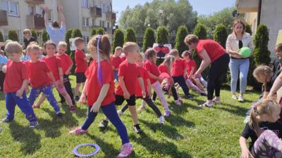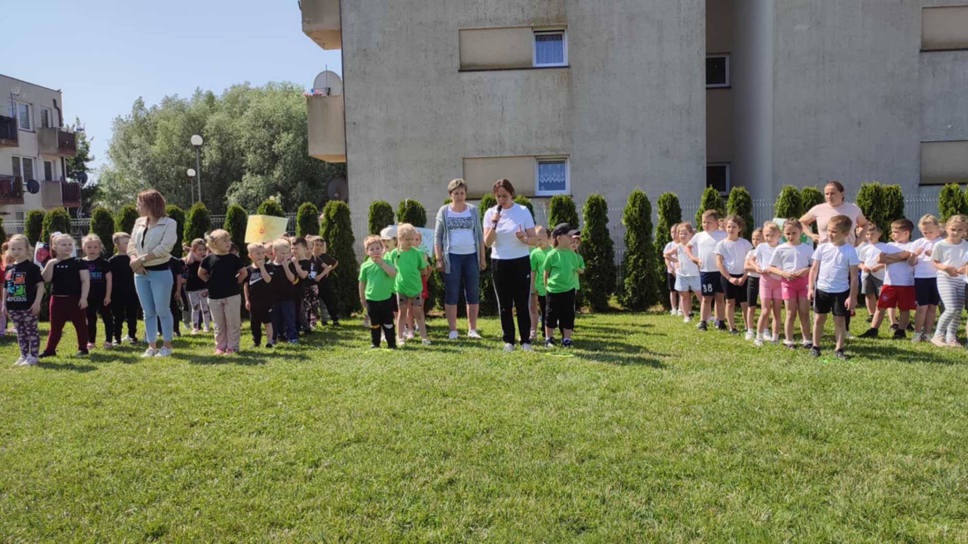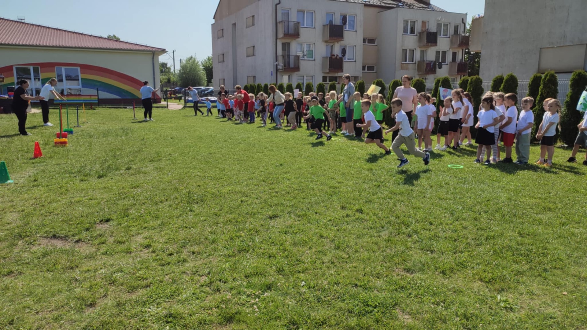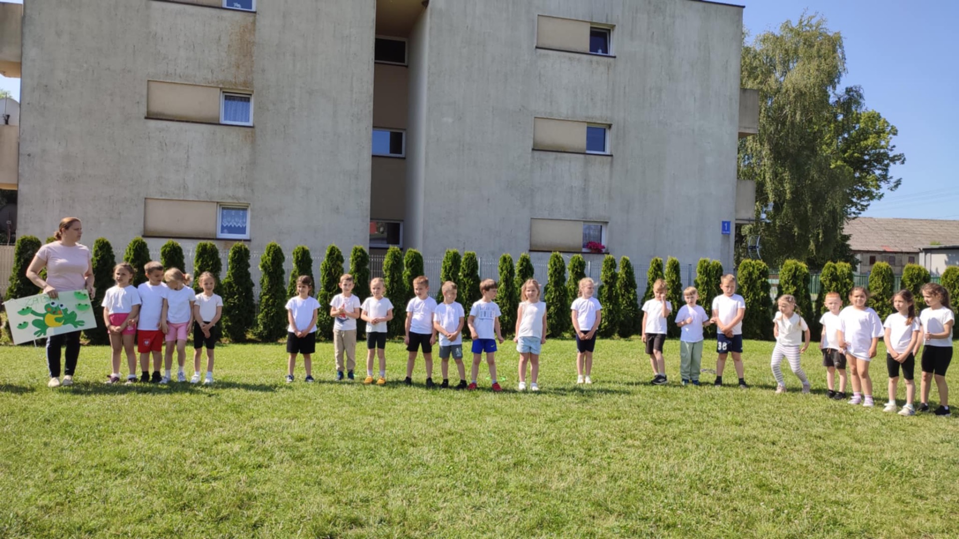 Dnia 13.06. w naszym przedszkolu odbyła się Olimpiada sportowa wszystkich grup przedszkolnych. Wszyscy zawodnicy wraz ze swoimi Paniami zgromadzili się na łące.Przy dźwiękach muzyki mali sportowcy czekali cierpliwe na wszystkich zawodników. Następnie wszystkie grupy stworzyły wielkie koło w którym, kolejno prezentowały się zespoły trzymając swoje transparenty. Towarzyszący doping prezentujących się drużyn tylko zagrzewał do wspaniałej sportowej zabawy. Po złożonej przysiędze.Zawodnicy przeszli do konkurencji sportowych. Z wielkim entuzjazmem każdy zespół wykonywał zadania .Po przejściu wszystkich konkurencji każdy zawodnik otrzymał dyplom Sportowca.Olimpiada miała na celu propagowanie aktywności sportowej na świeżym powietrzu oraz czerpania satysfakcji z włożonego wysiłku i wykonywania zadań w miłej i przyjaznej atmosferze. Dziękujemy Paniom za wspaniałą zabawę oraz rodzicom za współpracę i zakup jednakowych koszulek.