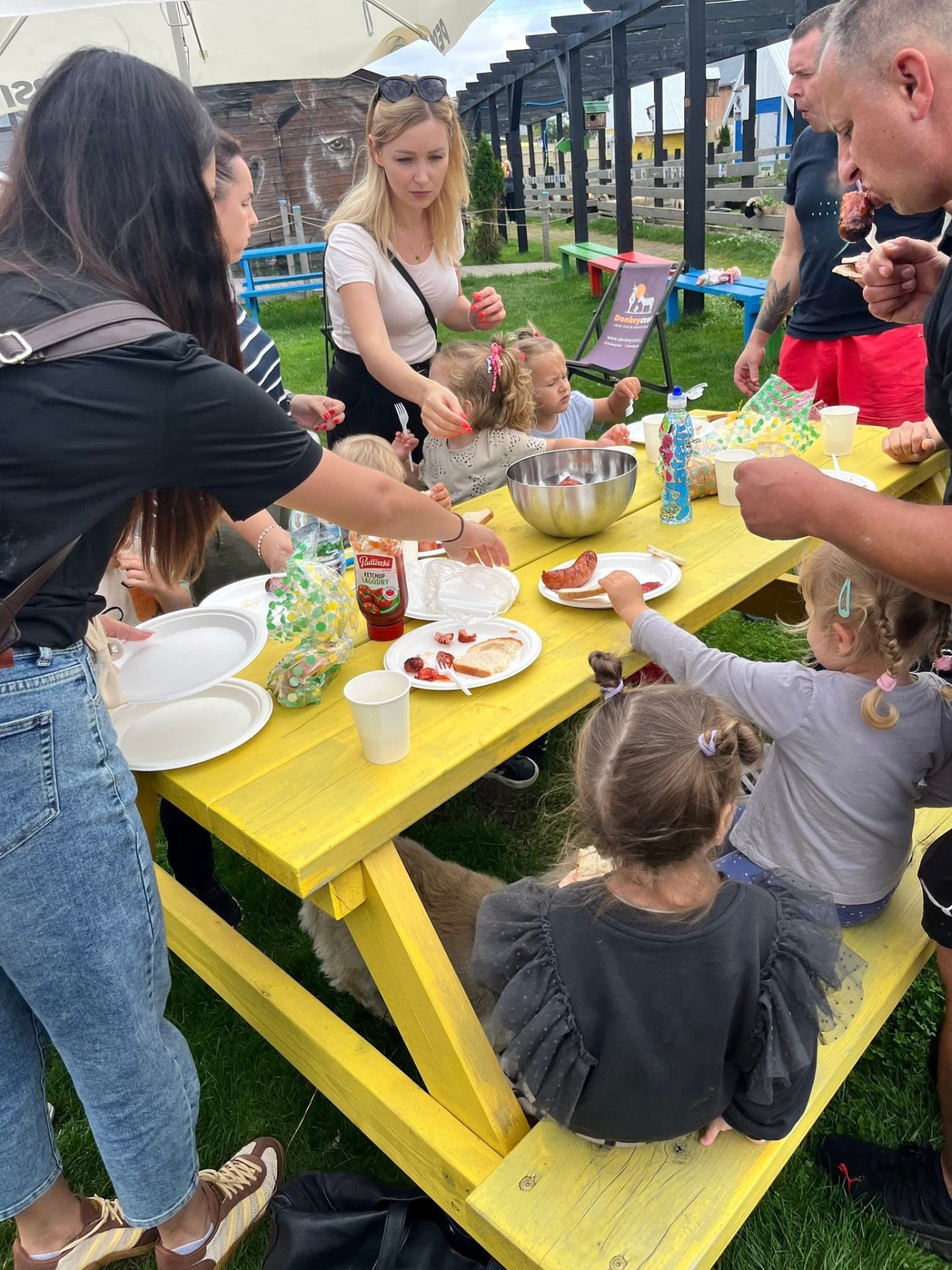 5 września dzieci z grupy Misie - trzylatki wraz z rodzicami wybrały się na wyjazd integracyjny do niezwykłego miejsca – DonkeySzot mini Zoo i Alpaki w Rogozinie. Była to pierwsza wspólna wycieczka najmłodszych przedszkolaków, pełna wrażeń i radości. Na uczestników czekało wiele atrakcji. Dzieci mogły zobaczyć z bliska osiołki, owce, alpaki i inne zwierzęta gospodarskie, dowiedzieć się ciekawostek na ich temat oraz spróbować samodzielnie je nakarmić. Spacery po terenie, wspólne zabawy ruchowe i warsztaty edukacyjne sprawiły, że maluchy uczyły się poprzez doświadczenie i kontakt z przyrodą. Nie zabrakło także czasu na piknik oraz rozmowy rodziców i wychowawców w miłej, rodzinnej atmosferze. Tego rodzaju spotkania są już naszą przedszkolną tradycją, jest to doskonała okazja do budowania więzi w grupie i wzmacniania relacji pomiędzy dziećmi, rodzicami i nauczycielami. Wyjazd do DonkeySzot był pełen uśmiechu, nowych doświadczeń i radosnych wspomnień. Dzieci wróciły do przedszkola szczęśliwe i bogatsze o nowe przeżycia, a rodzice mogli spędzić wartościowy czas ze swoimi pociechami.