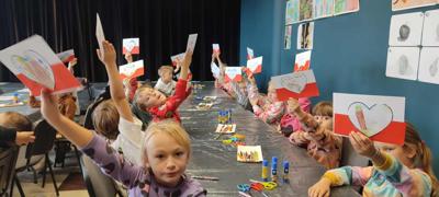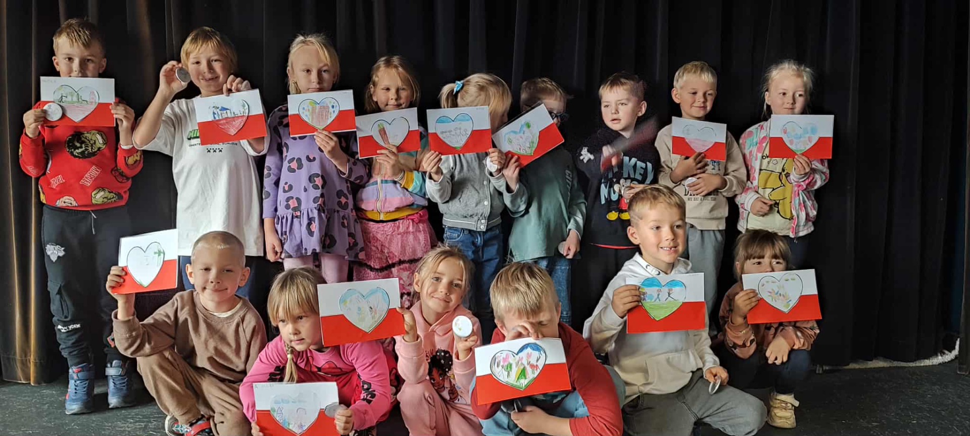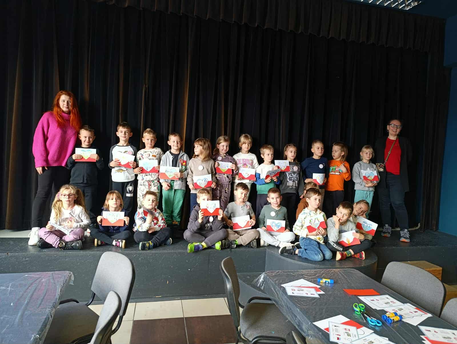 Z okazji zbliżającego się Święta Niepodległości dzieci z grup „Żabki” i „Duszków” wybrały się na wyjątkowe warsztaty patriotyczne do Kamińskiego Domu Kultury. Podczas zajęć przedszkolaki z zaangażowaniem wykonywały piękne laurki i kotyliony, które ozdobiły później naszą przedszkolną salę. W czasie wspólnej pracy dzieci rozmawiały o symbolach narodowych – fladze, godle i hymnie – oraz o tym, co oznacza słowo „patriotyzm”. Nie zabrakło także części artystycznej! Dzieci z dumą zaśpiewały piosenkę patriotyczną oraz recytowały wiersz „Kto ty jesteś? – Polak mały”, przypominając wszystkim, jak ważne jest poczucie przynależności do swojej Ojczyzny. Warsztaty w Kamińskim Domu Kultury były nie tylko świetną zabawą, ale także piękną lekcją miłości do Polski. Dziękujemy prowadzącym za ciepłe przyjęcie, a naszym małym artystom – za zaangażowanie, uśmiechy i wspaniałą postawę!